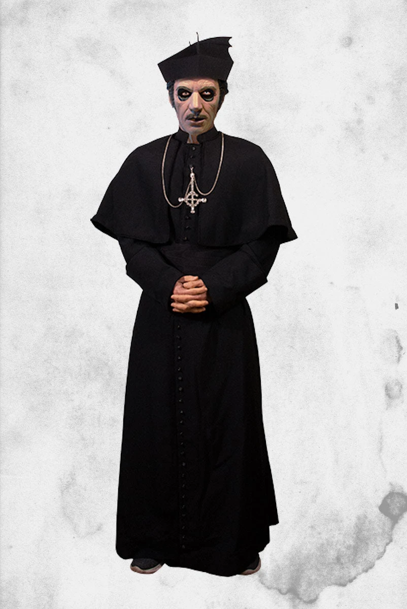 Designed by B Akerlund, the costume designer for Ghost, this costume is an amazing replica of the costume worn by Cardinal Copia. Every detail of the costume is here!