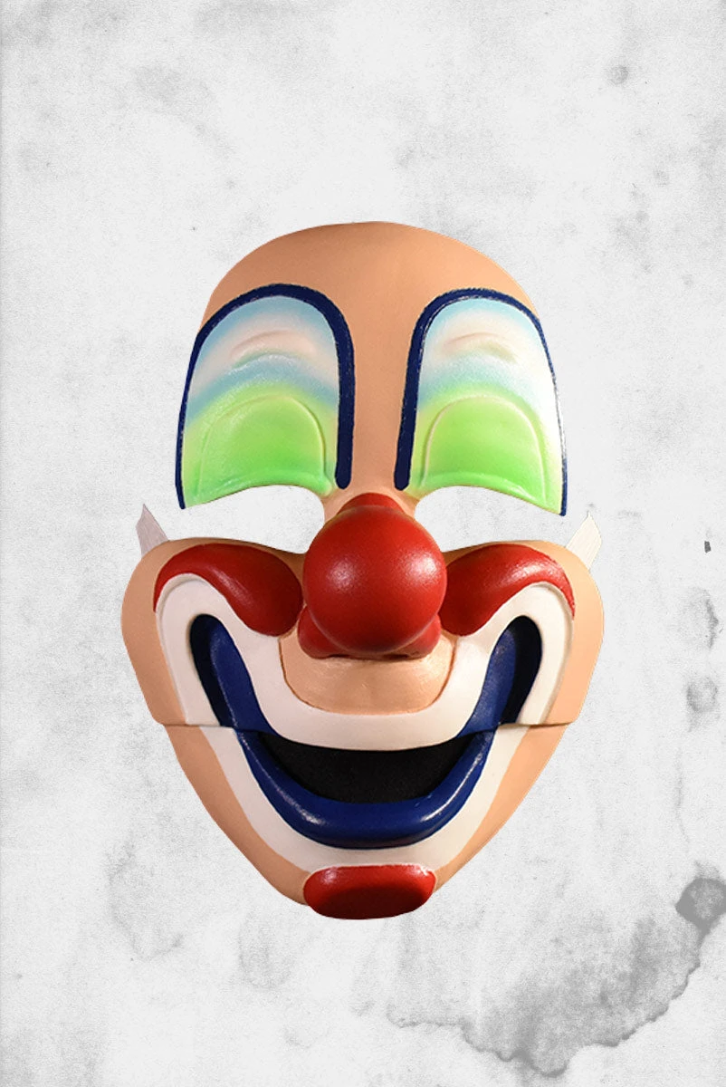 The Official Halloween Young Michael Myers Clown Mask was sculpted by Tyler Haslett, and is based on numerous screen shots from the opening scene of Halloween. In order to retain all of the details of this amazing mask, we decided to make it using injection molded plastic.