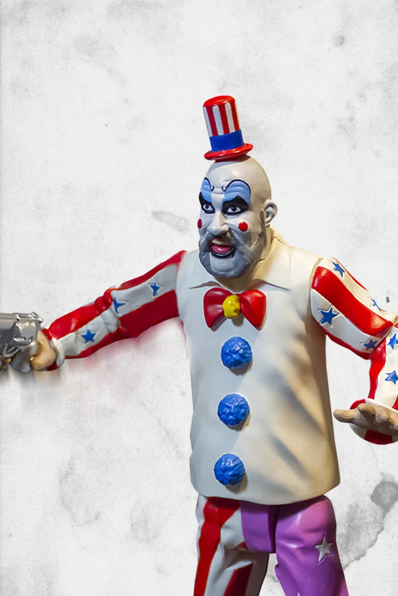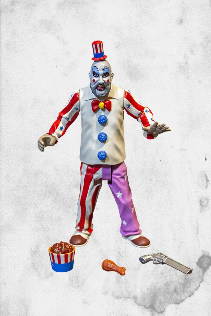 Trick or Treat Studios is thrilled to release the all new Finger Lickin’ Pistol Whippin’ Captain Spaulding Action Figure! Standing over 5″ tall this figure features Finger Lickin’ Pistol Whippin’ Action.