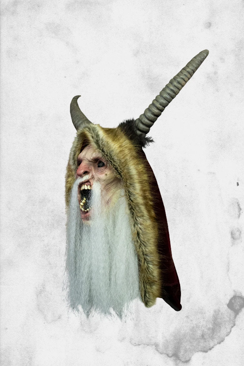 This amazing mask comes directly out of the screen used Resin Masters, which were provided to Trick or Treat Studios by Weta Workshops and finished by our Art Director, Justin Mabry. Krampus comes with the mask, horns and Santa hood.