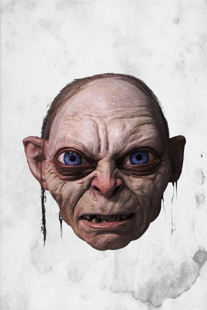 Based on hundreds of screen and behind the scenes photographs, this is the ultimate Gollum Mask from The Lord of the Rings Trilogy. Every detail of Gollum is present in this mask.