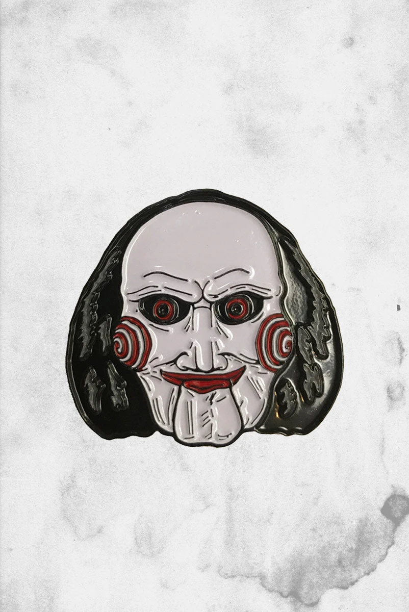 This amazing Billy the Puppet from SAW full color 1.5″ wide soft enamel pin, comes with a double rubber clutch backing and is perfect to put on a shirt, jacket or backpack.
