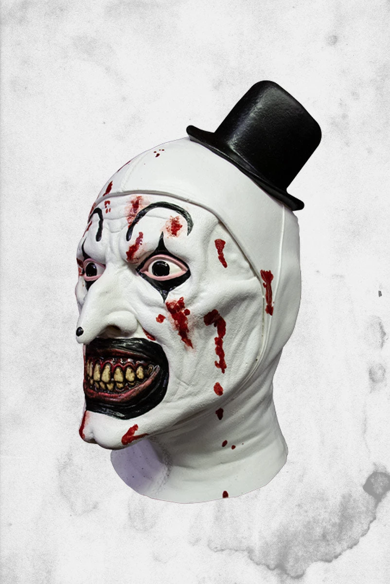 This amazing mask is a perfect version of the makeup worn by Art the Clown in the Cult Classic, Terrifier. Every detail of Art the Clown is included in the mask including his crazy eyes, pointy nose, maniacal grin, and bloody face.