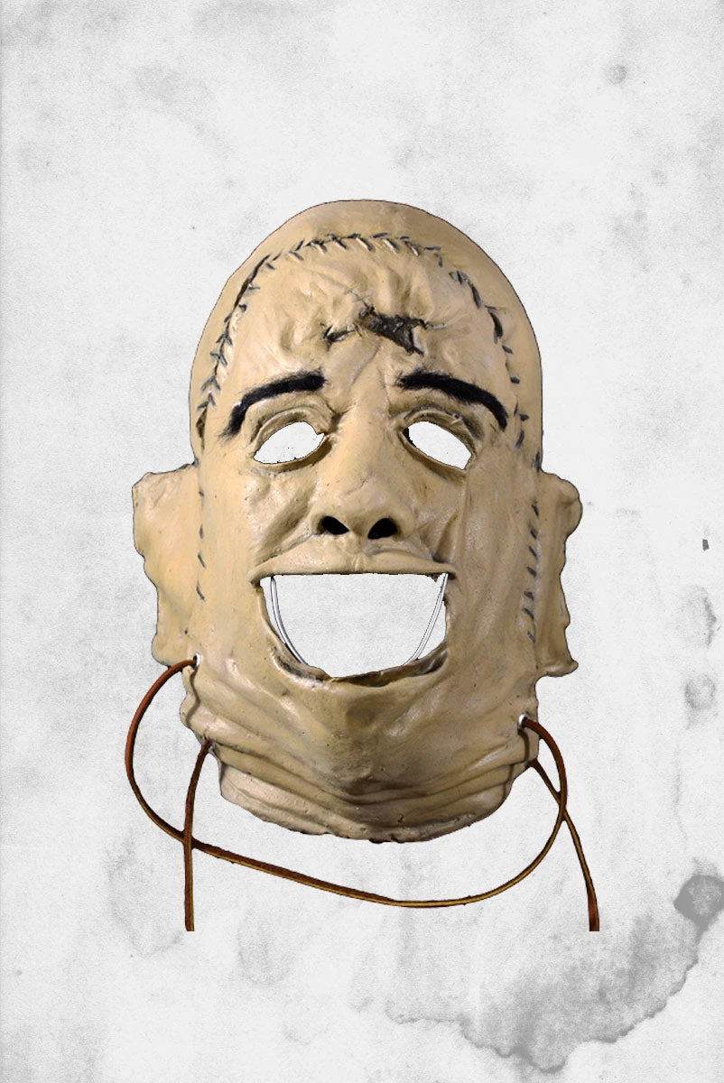 Sculpted by Connor Deless, this mask is based on the primary scenes of Leatherface in the 1974 Horror Classic, The Texas Chainsaw Massacre. Every detail of Leatherface is captured in this amazing face mask including Leatherface’s bar in his mouth meant to hold the mouth open.