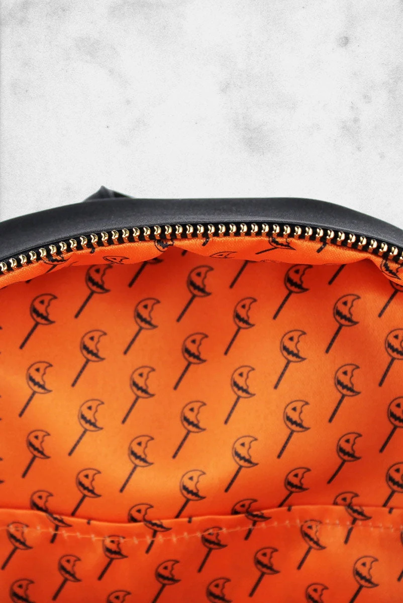 Collect all of your spooky treats in this adorable Trick ‘r Treat Retro Backpack. Featuring everyone’s favorite trick or treater, Sam, out for a night of, well.. you know.. with an interior print of Sam’s signature lollipop, and a little reminder on the back to always check your candy 😉