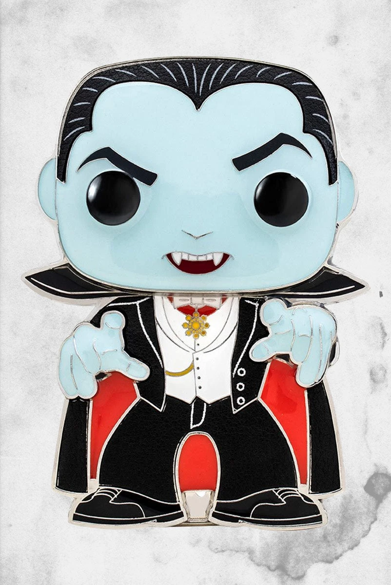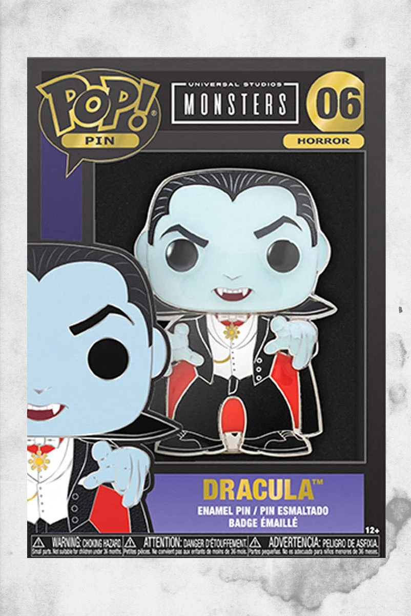 Expand your Pop! style with Pop! Pins! This large Pop! Pin measures approximately 4-inches tall, just like the Pop! Vinyl Figure it’s based on. Not only does the pin have the standard pin backings so you can attach it to bags or a cork board; it also has a “Funko Crown” pin stand allowing it to stand up for a dynamic display! True to it’s namesake, the head is raised making it pop from the body. This Universal Monsters Dracula Large Enamel Pop! Pin comes packaged in a window display box.