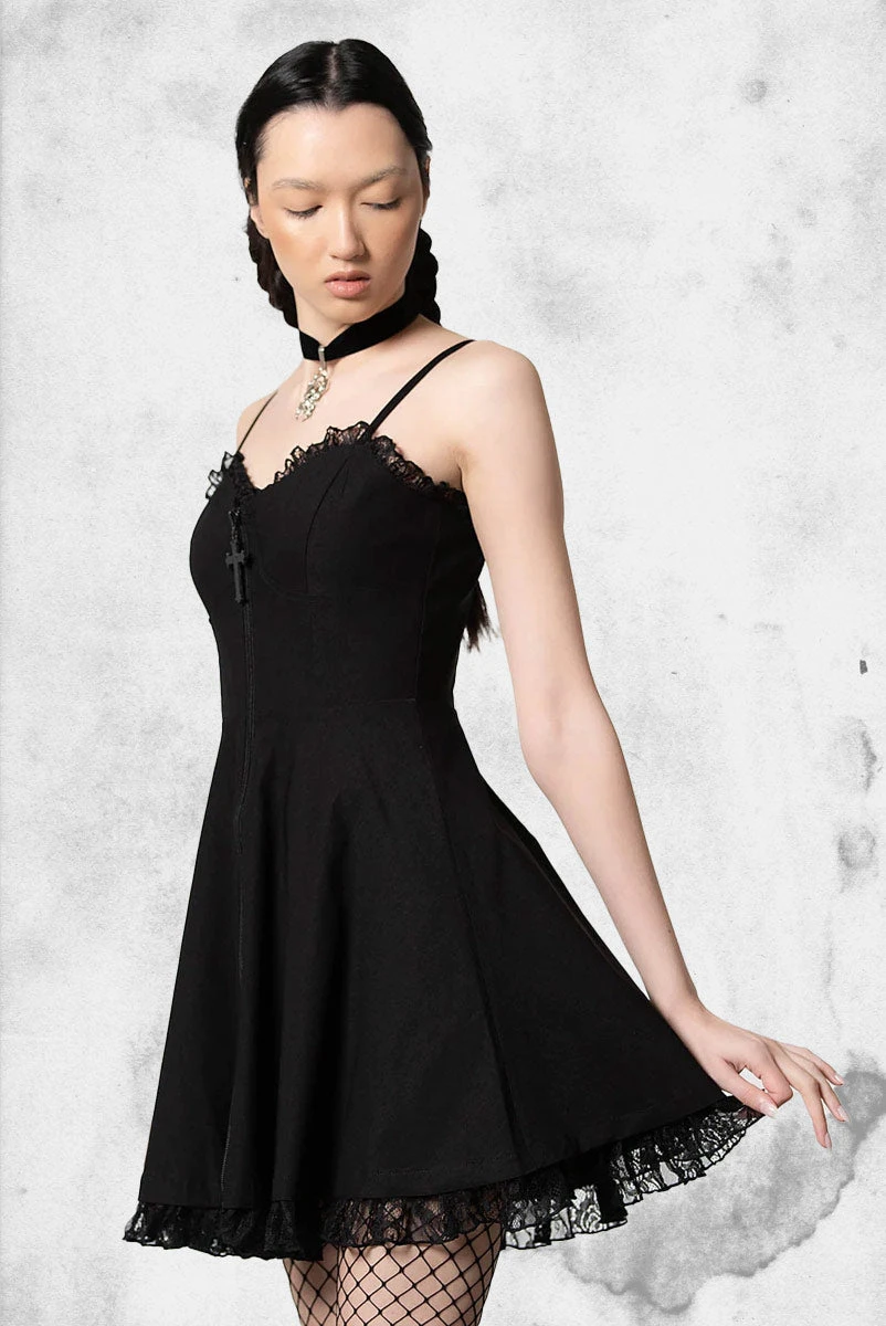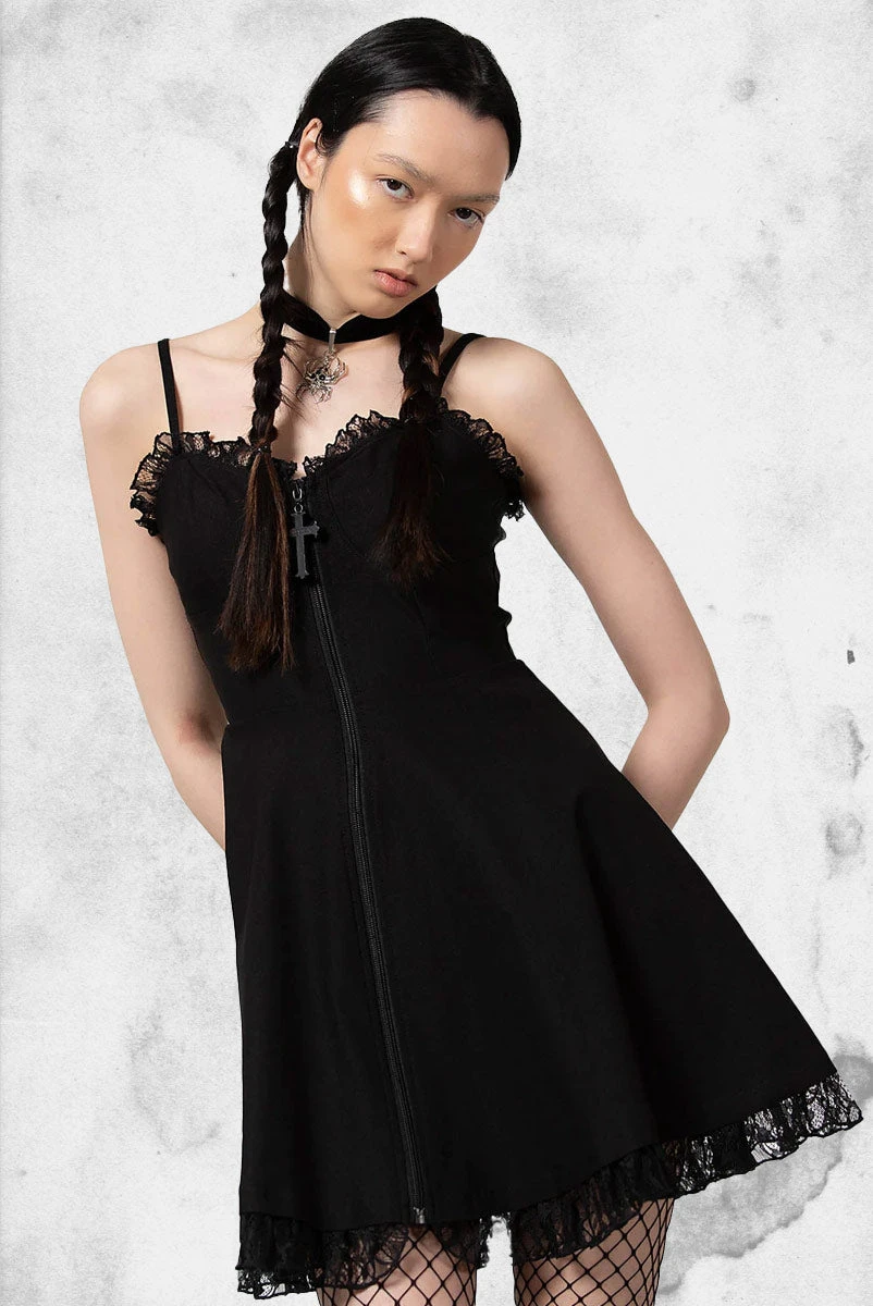 This black dress is simple and perfect for going out on the town or hanging out with friends and a staple for anyone with a dark black soul like us.